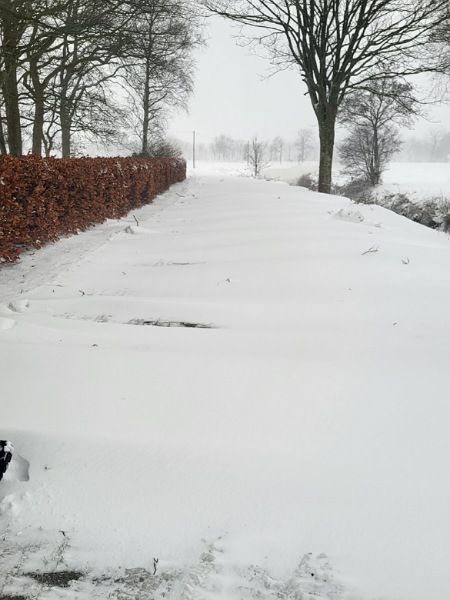 Anfang Januar hatte uns das Schneechaos fest im Griff. Wir waren, wie so viele anderen auch, vom Schnee überrascht worden. Es hatten sich Schneeverwehungen gebildet und wir waren komplett eingeschneit. Ein Hoch auf den Mann, der im Handumdrehen ein Schneeschild für den Trecker gebaut und uns damit freigeschoben hat. 🥰